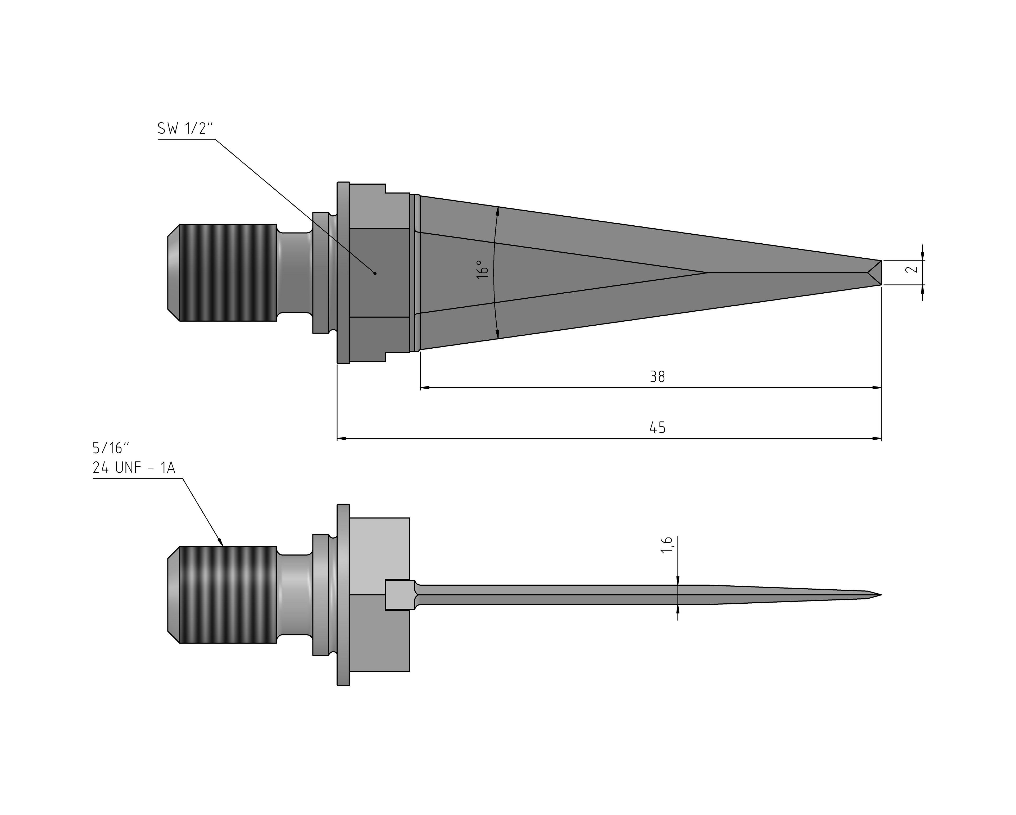 5/16"24UNF-45-38.1-1.6-82°-DBL